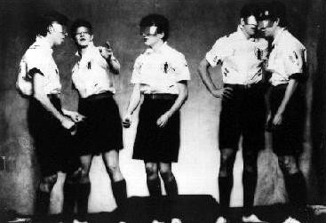 New-wave group popular throughout the late 1970s and early 1980s, formed by a group of art students at Kent State University, principally Mark Mothersbaugh and Jerry Casale. Their name comes from the central concept of de-evolution - the idea that mankind is devolving instead of evolving.