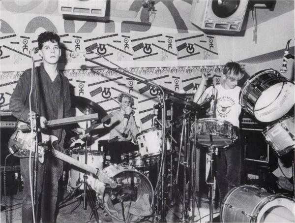Sprung Aus Den Wolken was part of the Geniale Dilletanten-movement in the early 80's along with Einstürzende Neubauten and M.D.K. They made a couple of records on their own Faux Pas and Les Disques Du Soleil Et De L'Acier. Their song Pas Attendre was used on Wim Wenders' Wings of Desire movie and became some kind of underground hit. Founder Kiddy Citny is also a painter. His paintings on the Berlin Wall have been exhibited through the world and are now in private collections in the USA, France, and Japan. [Bruits Blancs booklet]