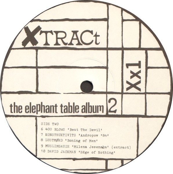 Reissued and repressed in 1989 with a different text area on the back sleeve: The Elephant Table Album (A Compilation Of Difficult Music). Matrix / Runout: ƱTOPIA MPO XX001-A̶̷̸̲̅ 1 (Side A, hand-etched runout) Matrix / Runout: MPO XX 001-2 (Side B, hand-etched runout) Matrix / Runout: ƱTOPIA MPO XX 001-3 (Side C, hand-etched runout) Matrix / Runout: MPO XX 001-4 (Side D, hand-etched runout)