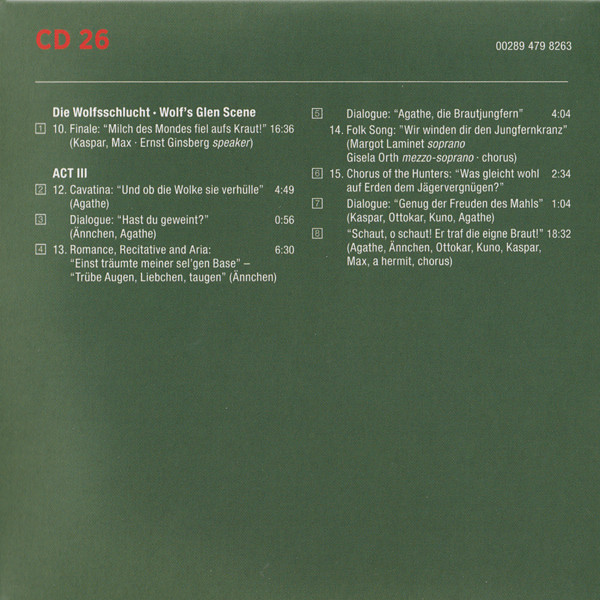 Editor's Note 1: tracks added with - for track position to separate parts or acts that would ordinarily call for a Header to keep complete works under a single Index Track. Editor's Note 2: Some sub-tracks are split into individual sub-tracks as presented on disc sleeves, to manage multipart tracks. Track position is as printed or by using #.# convention.