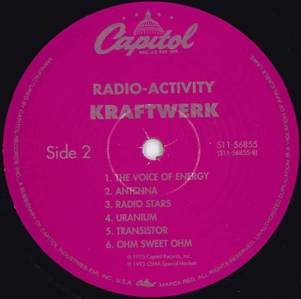 lacquer cut by Kevin Reeves Record Company Capitol Industries-EMI, Inc. Manufactured By Capitol Records, Inc. Phonographic Copyright (p) Capitol Records, Inc. Phonographic Copyright (p) CEMA Special Markets Copyright (c) Capitol Records, Inc. Copyright (c) CEMA Special Markets Pressed By Rainbo Records Pressed By Rainbo Records Mastered At Capitol Mastering This is a 1993 vinyl re-issue of Kraftwerk's 1975 LP. Even though listed on the labels, tracks A5 Intermission and B5 Transistor are mysteriously missing from this pressing.