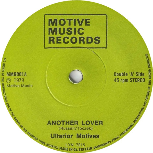 bass guitar, vocals Rick Green drums [rhythm machine] Roland 77 engineer Alf Bower engineer Moya Burns guitar [guitars] Kay Russell plated by Maxwell Anandappa producer Ulterior Motives vocals, percussion Nick Toczek written-by Kay Russell written-by, lyrics by, cover [design] Nick Toczek Pressed By Lyntone Recordings Ltd. Pressed By Lyntone Recordings Ltd. Phonographic Copyright (p) Motive Music Records Mastered At Bradford Communications Centre Distributed By Red Rhino Records Printed By Delga Press Limited Double 'A' Side release. Matrix / Runout: MMR-001-A LYN 7215 MAX (Side A runout etched) Matrix / Runout: MMR-001-B LYN 7216-IS MAX (Side B runout etched)