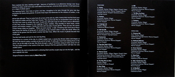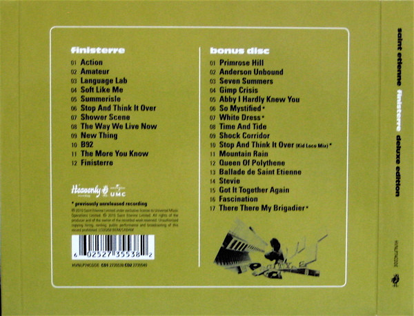artwork [collages] Jakob Kolding coordinator [project co-ordinated by] Julian Fernandez design [sleeve design], photography Paul Kelly featuring [the musical talents of] Ben Edwards featuring [the musical talents of] Brian Higgins featuring [the musical talents of] Douglas Benford featuring [the musical talents of] Gerard Johnson featuring [the musical talents of] Ian Catt featuring [the musical talents of] Isabel Waidner featuring [the musical talents of] Jez Williams featuring [the musical talents of] Leo Chadburn featuring [the musical talents of] Lyanne Compton featuring [the musical talents of] Nick Coler featuring [the musical talents of] Sean Read featuring [the musical talents of] Tim Powell liner notes Bob Stanley liner notes Jude Rogers liner notes Paul Kelly liner notes Pete Wiggs liner notes Sarah Cracknell liner notes [original finisterre sleeve notes - 2002] Mark Perry management Andrew Walsh management Martin Kelly performer [saint etienne are] Bob Stanley performer [saint etienne are] Pete Wiggs performer [saint etienne are] Sarah Cracknell photography by [reckless records] Bob Stanley remastered by Guy Davie voice actor [featuring the voice of] Michael Jayston Phonographic Copyright (p) Saint Etienne Limited Copyright (c) Saint Etienne Limited Licensed To Universal Music Operations Ltd. Made By EDC, Germany Made By EDC, Germany Saint Etienne are: Sarah Cracknell (appears courtesy of Garsington Opera) Bob Stanley (appears courtesy of Panini stickers) Pete Wiggs (appears now and then)