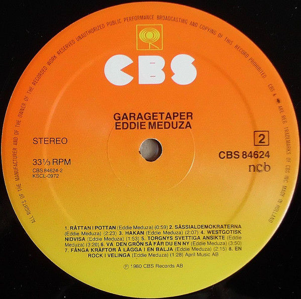 tracks a5 arranged by Eddie Meduza design [album] Anders Bühlund photography by Labe Allwin photography by Lennart Dannstedt tracks a5 written-by Eddie Cochran tracks a1 to a4, a6 to b8 written-by Eddie Meduza Phonographic Copyright (p) CBS Records AB Copyright (c) CBS Records AB Published By April Music AB Published By Sonet Music AB Pressed By CBS, Haarlem Record Company CBS Inc. A1 to A4, A6 to B8 April Music AB A5 Sonet Music AB