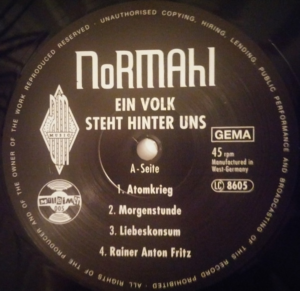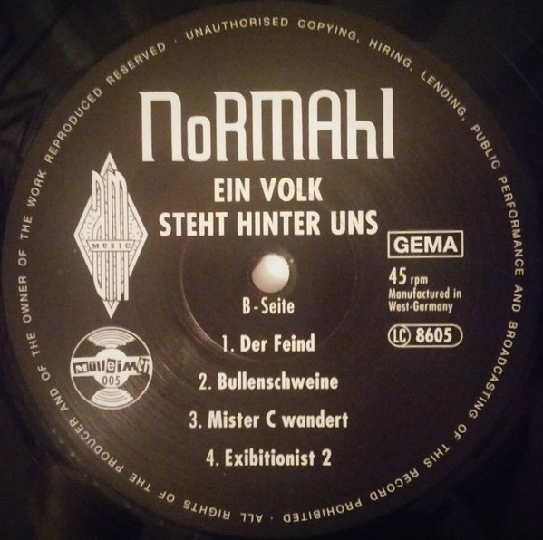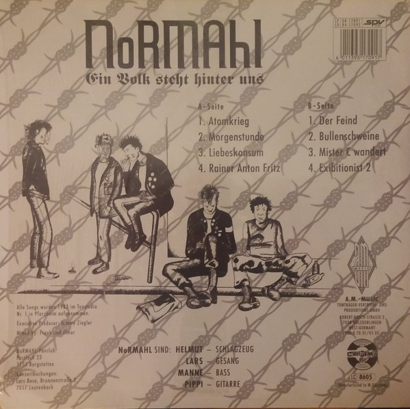 bass Manny Rutzen booking Lars Besa drums [schlagzeug] Helmut Krizsan executive-producer Thomas Ziegler guitar [gitarre] Jürgen Pirpamer mixed by Elmar mixed by Frank Osterland producer [uncredited] NoRMAhl vocals [gesang] Lars Besa Recorded At Studio No. 1 Pforzheim Distributed By SPV Special Edition with free 7 single NoRMAHL - Deutschland 87. [Printing on front cover Sonderpressung mit Gratissingle >>NoRMAHL-Deutschland 87<<]