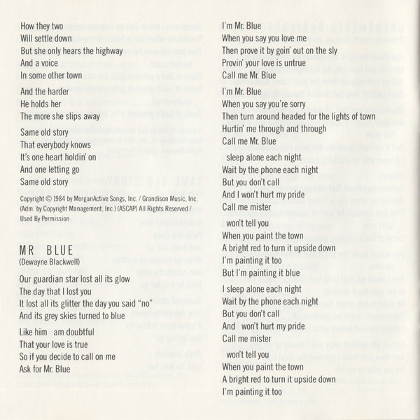 acoustic guitar Chris Leuzinger acoustic guitar Johnny Christopher acoustic guitar Mark Casstevens acoustic guitar Pat Alger arranged by [strings] Charles Cochran art direction Virginia Team band [stillwater], acoustic guitar, vocals Ty England band [stillwater], bass guitar, vocals Tim Bowers band [stillwater], drums, percussion Mike Palmer band [stillwater], guitar, fiddle, vocals James Garver band [stillwater], keyboards, fiddle, vocals Dave Gant band [stillwater], steel guitar, electric guitar Steve McClure bass Mike Chapman bass Milton Sledge booking [agency] Buddy Lee Attractions crew [stillwater], other [bus driver] Al Barclay crew [stillwater], sound designer [sound] Dan Heins crew [stillwater], stage manager Brian Petree crew [stillwater], tour manager [money man] Kelly Brooks design Jerry Joyner double bass [upright string bass] Edgar Meyer drums Milton Sledge electric guitar Chris Leuzinger electric piano, piano, keyboards Bobby Wood fiddle Rob Hajacos harmony vocals Curtis Young harmony vocals Garth Brooks harmony vocals Hurshel Wiginton harmony vocals Jennifer O'Brien harmony vocals Trisha Yearwood harmony vocals Wendy Johnson make-up Mary Beth Felts management Doyle-Lewis Management mastered by Denny Purcell photography by Beverly Parker producer Allen Reynolds recorded by, mixed by Mark Miller steel guitar Bruce Bouton strings The Nashville String Machine strings [nashville string machine] Carl Gorodetzky strings [nashville string machine] Dennis Molchan strings [nashville string machine] Gary Vanosdale strings [nashville string machine] George Binkley strings [nashville string machine] John Borg strings [nashville string machine] Kristin Wilkinson strings [nashville string machine] Lee Larrison strings [nashville string machine] Mark Tanner strings [nashville string machine] Pam Sixfin vocals Garth Brooks Copyright (c) Capitol Nashville Phonographic Copyright (p) Capitol Nashville Manufactured By Capitol Records, Inc. Record Company Capitol-EMI Music, Inc. Copyright (c) Bait And Beer Music Copyright (c) Forerunner Music Inc. Copyright (c) Major Bob Music Co. Inc. Copyright (c) Texas Wedge Music Copyright (c) Mid-Summer Music, Inc. Copyright (c) Muhlenberg Music, Inc. Copyright (c) Cal Cody Music Copyright (c) Wee B. Music Inc. Copyright (c) Careers Music, Inc. Copyright (c) Music Ridge Music, Inc. Copyright (c) Royalhaven Music, Inc. Copyright (c) WB Music Corp. Copyright (c) Hot Serve Music, Inc. Copyright (c) Cash Crop Music Copyright (c) MorganActive Songs, Inc. Copyright (c) Grandison Music, Inc. Copyright (c) Copyright Management, Inc. Copyright (c) Unart Music Corp. Copyright (c) EMI Catalogue Partnership Copyright (c) EMI Unart Catalog Inc. Copyright (c) Cornerstone Music Co. Copyright (c) Warner/Chappell Music Canada Ltd. Copyright (c) EMI Blackwood Music Inc. Recorded At Jack's Tracks Recording Studio Mixed At Jack's Tracks Recording Studio Mastered At Georgetown Masters Pressed By Capitol Jax Early U.S. pressing with no SID Codes.