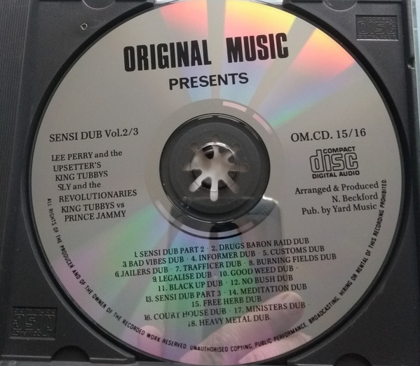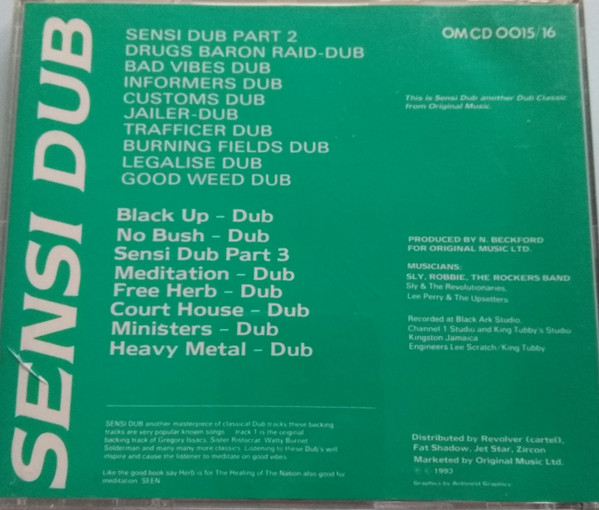 backing band [musicians] Lee Perry & The Upsetters backing band [musicians] Rockers Band backing band [musicians] Sly & The Revolutionaries engineer King Tubby engineer Lee Perry musician Robbie Shakespeare musician Sly Dunbar producer Neville Beckford Produced For Original Music Recorded At The Black Ark Recorded At Channel One Recording Studio Recorded At King Tubby's Studio Pressed By Disctronics Group, United Kingdom King Tubbys Vs Prince Jammy Recorded at Black Ark Studio, Channel 1 Studio and King Tubby's Studio Kingston, Jamaica. Distributed by Revolver, Fat Shadow, Jet Star and Zircon. Marketed by Original Music Ltd. This is Sensi Dub another Dub Classic from Original Music Matrix / Runout: Disctronics