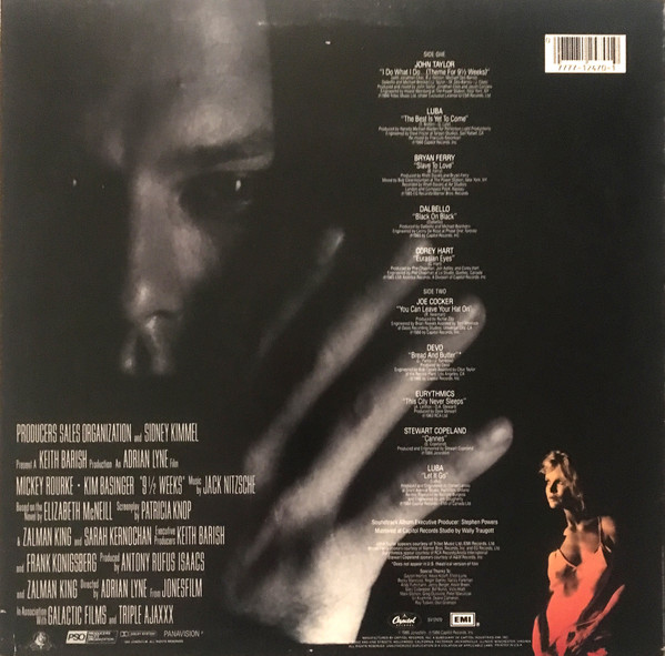 This version was released on a black Capitol label with a rainbow rim. 9½ Weeks - Original Motion Picture Soundtrack is on purple labels. Barcode: 077771247019 (Scanned) Barcode: 0 7777-12470-1 (Text) Pressing Plant ID: E A S T (Embossed, B side label around spindle hole) Rights Society: ASCAP Rights Society: PRS Rights Society: BMI Rights Society: CAPAC Matrix / Runout: SV-1-12470 (Side A label) Matrix / Runout: SV-2-12470 (Side B label) Matrix / Runout: SV-1-12470 F-3 [Allied 'a' logo] B-22621-F3 △11589 MASTERED BY CAPITOL Wally 1-2 SP0-1 AL-SP (Side A runout - var 1) Matrix / Runout: SV-2-12470 F-3 [Allied 'a' logo] B-22622-F3 △11589-X MASTERED BY CAPITOL Wally 1-2 SP0-1 AL-SP (Side B runout - var 1)