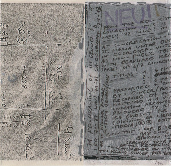 mastered by, edited by, artwork Klaus Dinger performer [with] Eberhard Kranemann performer, composed by Eberhard Kranemann performer, composed by Klaus Dinger performer, composed by Michael Rother photography by Thomas Dinger producer Ira Goldshit producer Klaus Dinger recorded by Thomas Dinger Phonographic Copyright (p) Neu! Multimedia Copyright (c) Neu! Multimedia Recorded At St. Maria Unter Dem Kreuz Made By Captain Trip Records Pressed By Memory-Tech From the KD historic tapes collection this is Neu! '72 Live! in Düsseldorf 6 May at congregation hall of St. Maria Unter dem Kreuz (tanx) in Düsseldorf - Unterrath. As non-public test / self-audition for a series of 6/7 concerts later in '72.