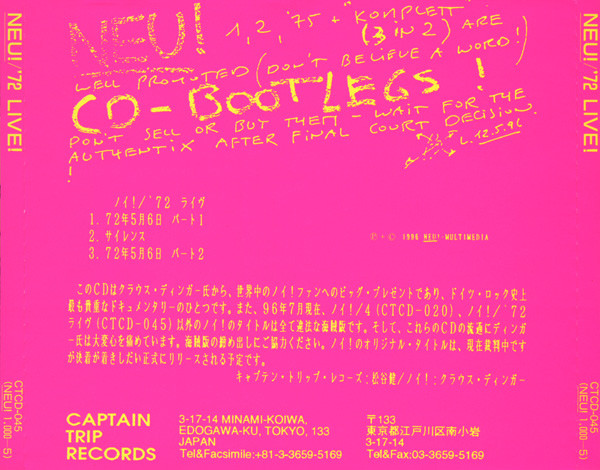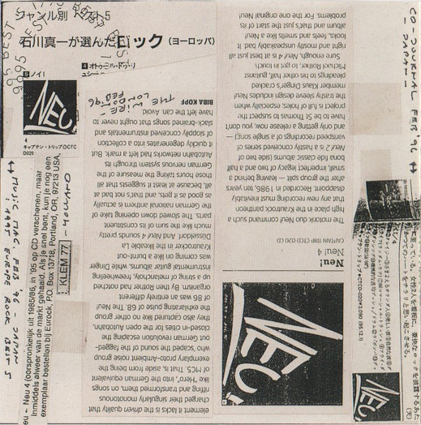 Excerpts of this record was reissued in a re-edited and re-mixed form as part of the Neu! box. Rights Society: JASRAC Matrix / Runout: CTCD-045 MT A01 Mastering SID Code: IFPI L2B1 Mould SID Code: IFPI 4440