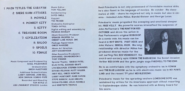 art direction Judy Kaganowich composed by, producer Basil Poledouris conductor David Snell contractor [orchestra] Tonia Davall copyist Vic Fraser edited by [digital], assemblage Francis Buckley executive-producer [album] Spencer Proffer executive-producer [milan] Emmanuel Chamboredon executive-producer [milan] Toby Pieniek orchestrated by Greig McRitchie orchestrated by [additional] Conrad Pope orchestrated by [additional] John Bell orchestrated by [additional] Larry Ashmore orchestrated by [additional] Nick Ingman recorded by, mixed by Tim Boyle score editor Tom Villano supervised by [package] Chris Maguire Phonographic Copyright (p) Buena Vista Pictures Distribution, Inc. Copyright (c) Buena Vista Pictures Copyright (c) Milan Entertainment, Inc. Manufactured By BMG Music Distributed By BMG Music Distributed By BMG Distribution Recorded At Air Lyndhurst Studios Mixed At Air Lyndhurst Studios Produced For Cherry Lane Music, Inc Pressed By HMG (2) Barcode: 731383571121 Barcode: 7 31383 57112 1 (Text) Barcode: 80025 75540 (Sticker, text) Matrix / Runout: 7313835711-2 HMG ∙ Mastering SID Code: none Mould SID Code: none