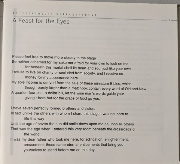 engineer [sound engineer] Jean-Pierre Zing tracks 15 guitar Oliver Ray mastered by [pre-mastering] Jean-François Pontefract mastered by, edited by Frédéric Bailly mastered by, edited by Gérard Nguyen percussion Frank Funaro performer [words] Nick Tosches photography by Bertrand Prévost photography by David Balicki photography by Renaud Monfourny violin Catherine McRae tracks 15 vocals Patti Smith Recorded At Centre Pompidou Distributed By Harmonia Mundi Pressed By kdg France Copyright (c) Nick Tosches, Inc. Performed at the Centre Georges Pompidou, March 24th 2001, for the exhibition Les Années Pop. Recorded by France Culture for a program introduced by Daniel Caux and broadcast May 30th 2001.