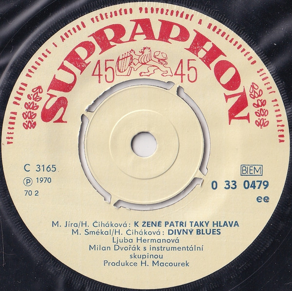 backing band Milan Dvořák Se Svou Skupinou lyrics by Hana Čiháková producer Harry Macourek vocals Ljuba Hermanová Pressed By Gramofonové Závody Pressed By Gramofonové Závody ℗ 1970 Matrix / Runout: C 3165 (Label A) Matrix / Runout: C 3166 (Label B) Rights Society: BIEM Price Code: ee Other: 70 2 (Manufacturing date code)