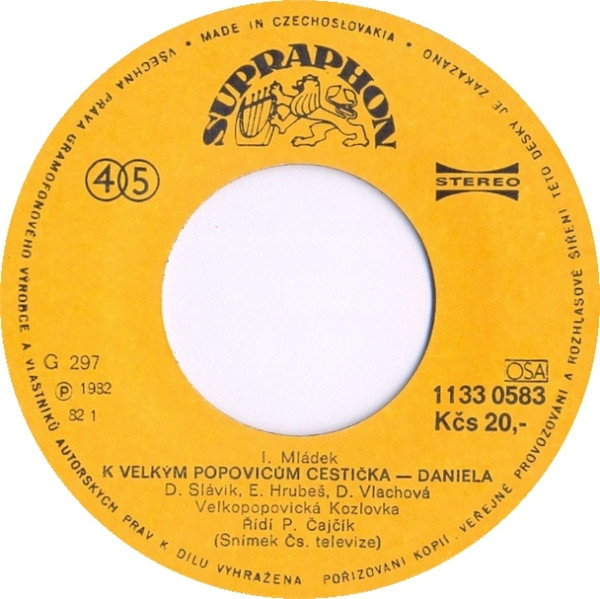 Made in Czechoslovakia ℗ 1982 Matrix / Runout: G 297 (Label A) Matrix / Runout: G 298 (Label AA) Matrix / Runout: G 297/B A (Runout stamp A) Matrix / Runout: G 298/A A (Runout stamp AA) Rights Society: OSA Price Code: Kčs 20,- (Retail price) Other: 82 1 (Manufacturing date code)