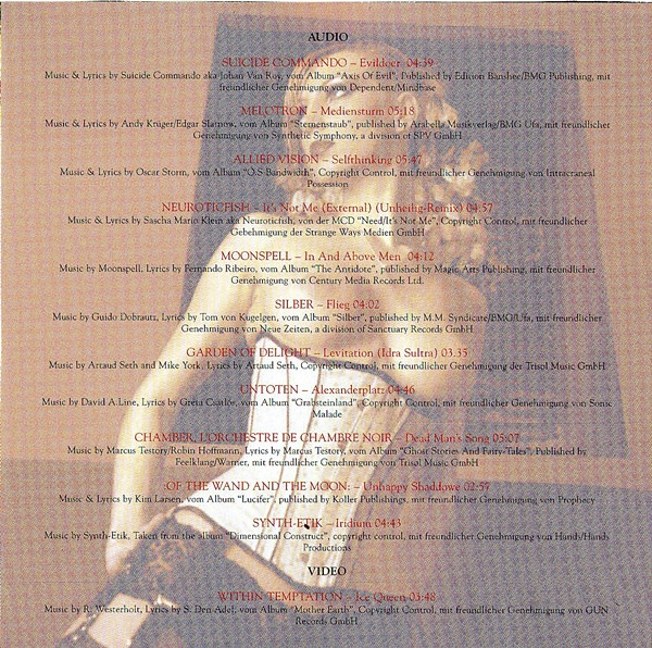 Track 1 from the album Axis Of Evil Track 2 from the album Sternenstaub Track 3 from the album O.S Bandwith Track 4 from the MCD Need/It's Not Me Track 5 from the album The Antidote Track 6 from the album Silber Track 8 from the album Grabsteinland Track 9 from the album Ghost Stories And Fairy-Tales Track 10 from the album Lucifer Track 11 from the album Dimensional Construct Video from the album Mother Earth