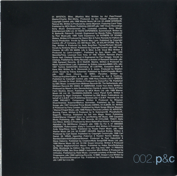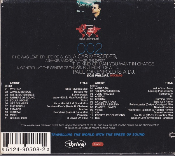 dj mix, compiled by Paul Oakenfold design Studio Lobster mastered by [digitally mastered by] Sound Performance sleeve notes Dom Phillips text by [additional text by] Mark White Phonographic Copyright (p) Thrive Records Copyright (c) Thrive Records Licensed From Club Parasite Ltd. Manufactured By Sire Records Group Inc. Distributed By Sire Records Group Inc. Glass Mastered At WEA Mfg. Olyphant Pressed By WEA Mfg. Olyphant Glass Mastered At WEA Mfg. Olyphant Pressed By WEA Mfg. Olyphant Made By WEA Manufacturing Inc. First US release of GU007. The catalogue number on the packaging and CD's was changed to GU002 as Thrive was re-numbering the GU releases in the order in which the original import was released.